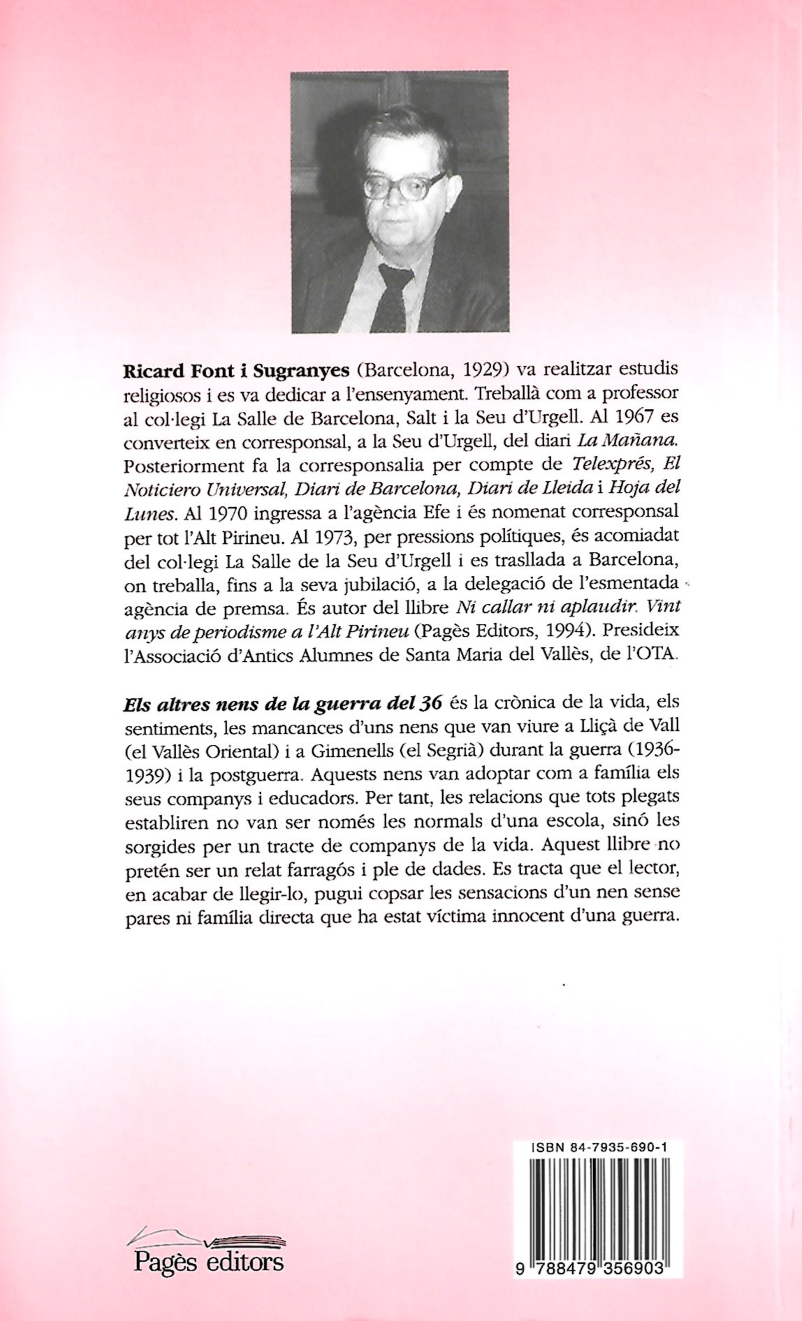 Seria presumptuós i agosarat per la meva part pensar i afirmar que aquest llibre vol ser un pas més a favor de la pau del món. A la meva edat, les utopies ja no són a l’abast, pero sí que m’agradaria que alguns criminals de guerra i alguns joves ignorants del passat fessin una lectura entre línies d’aquest testimoni, si més no, per preveure les conseqüències que les incomprensions entre els éssers humans poden ocasionar en aquells que tan sols estan preparats per rebre l’escalfor i l’amor d’uns pares.